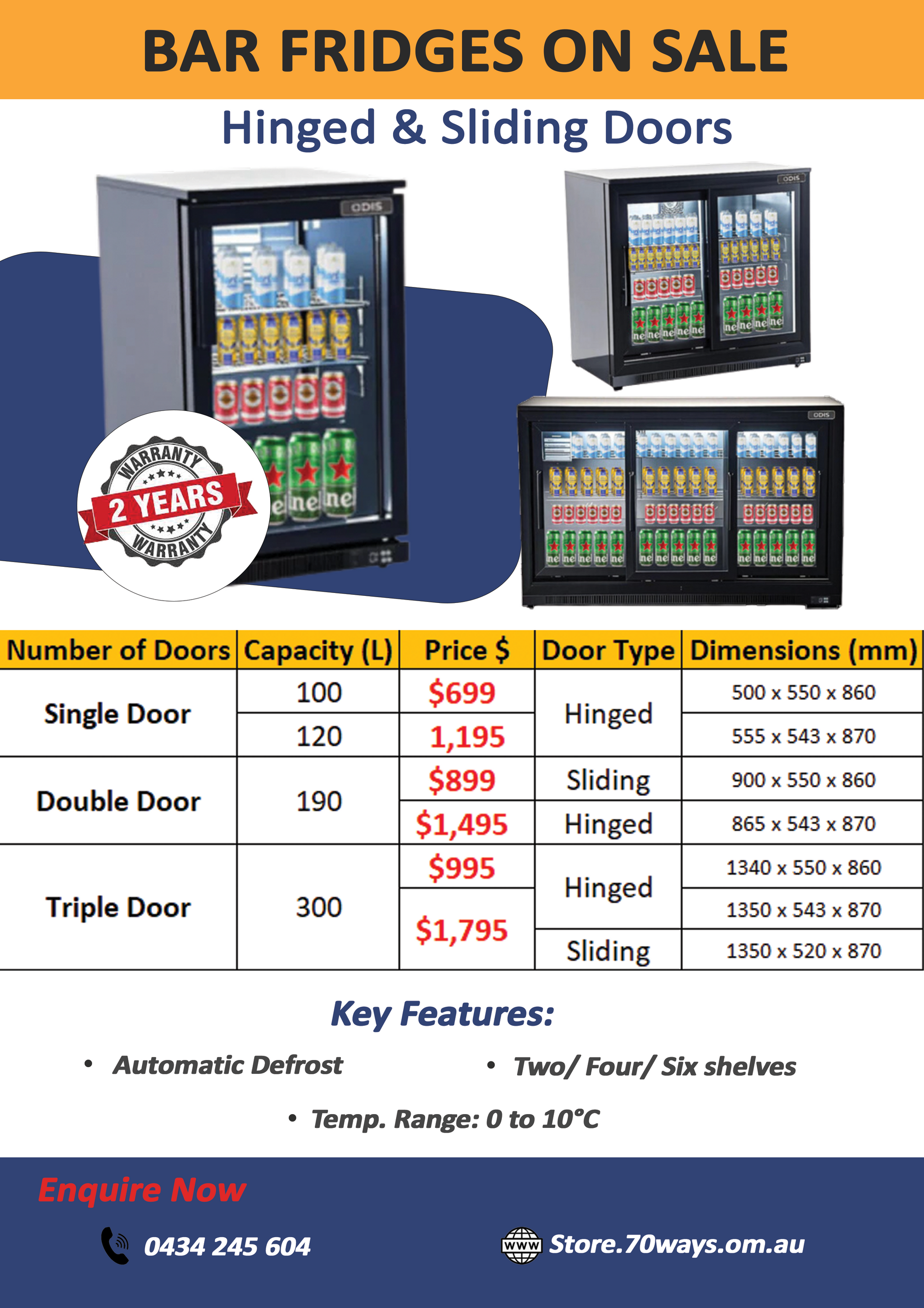 -Door Type: Hinged or Sliding (model-specific)